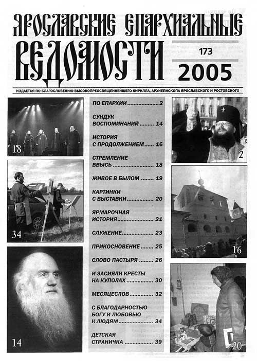 Газета издается по благословению Высокопреосвященнейшего Кирилла, архиепископа Ярославского и Ростовского Газета основана в 1860 г. Издание возобновлено в 1991 г. Свидетельство о регистрации №22 от 28 января 1991 года, выдано Управлением издательств, полиграфии и книжной торговли Яроблисполкома Учредитель Ярославское Епархиальное Управление Главные редактор: архимандрит Вениамин (Лихоманов) Ответсвенный секретарь: Юлия Владимировна Стихарева Технический редактор: Ирина Игоревна Зеленкова Корректор: Елена Владимировна Кухарева Подписной индекс 54939